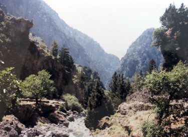 Hoewel ik niet zo’n wandelaar ben zou ik volgens andere Kreta-gangers de wandeltocht door de Samaria-kloof niet mogen overslaan. Dus trek ik mijn bergschoenen aan, vul mijn rugzak met een fles water, bananen en een zak chips en sta om 7.30 op het busstation van Hania om de “vroege” bus naar Omalos te halen. Gezien het tijdstip van vertrek, de kosten en de onafhankelijkheid van een groep heb ik besloten de excursie van en naar de kloof met het openbaar vervoer te doen. De publieke bus zit overigens ook helemaal vol met toeristen. Om kwart voor 9, na een mooie rit door de bergen, komen we aan bij de ingang van de kloof. Er is daar boven nog een restaurant, maar ik (met zo’n 80 anderen, vooral Duitsers) ga meteen op pad.