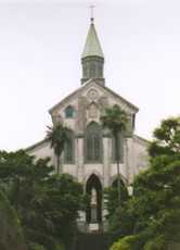 Na het inmiddels gebruikelijke ontbijt bestaande uit cappuccino en chocoladecake ging ik met de tram naar het zuiden van Nagasaki. Allereerst bezocht ik daar een klein katholiek kerkje uit de 19e eeuw, met mooie glas-in-lood ramen.