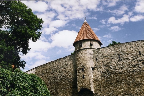 Het eerste dat je van het middeleeuwse centrum van Tallinn te zien krijgt is een stadspoort met een rond, rood torentje. De stadsmuren zijn hier nog goed bewaard gebleven, en er staan nog ruim 20 van die kenmerkende torens overeind.