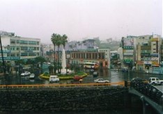 Toen door naar Jeju-stad. Het hotel van mijn keus bleek gesloten, en ik werd via een buurvrouw doorgestuurd naar het Dongmung Hotel (?, zelf vertaald uit het Koreaans). Erg goede ligging, 40 gulden voor een eenpersoonskamer met TV en badkamer. Eigenaresse spreekt geen Engels.