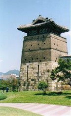 Suwon is een zuidelijke voorstad van Seoul, en beschikt over een groot fort. Vanaf de hoofdpoort kun je nog helemaal via de stadsmuren een rondje om het (oude) centrum van de stad lopen, een tocht van ruim 5 kilometer.
