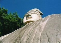 We hebben inmiddels zoveel tijdwinst geboekt dat er ook nog wel een derde excursie inzit. De stenen Buddha Jebiwon lijkt ons wel wat. Dus: voor de derde keer in de bus. Bij stenen Buddha’s ben je meestal wel snel uitgekeken, maar deze is wel heel basic. Eigenlijk is het gewoon een groot rotsblok waar ze een uitgehouwen hoofd van Buddha hebben opgezet. Vreemd gezicht, vooral van dichtbij (dan zie je eigenlijk alleen maar heel veel rotsblok). Vanaf de weg is het toch nog wel een mooi gezicht. Maar binnen 10 minuten zijn we echt uitgekeken. En ja, we hoeven maar langs de kant van de weg te gaan staan en we hebben weer een lift.