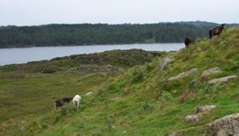 In het bezoekerscentrum is een tentoonstelling over de natuur van Lygra te zien. Die natuur zelf kun je het beste ontdekken via een van de vele wandelingen die zijn uitgezet. Ik maak het grootste rondje, langs de kust. Het is prettig wandelen over de paden tussen de heide. Als de zon schijnt zal het er erg heet zijn, er is nauwelijks beschutting. Hier en daar staat een oud en verlaten hutje. De aangekondigde schapen zie ik ook nog, ze zijn echter erg schuw.