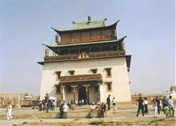 De eerste echte dag ga ik te voet naar het Gandan-klooster. Het ligt in een buitenwijk met gers, nog net geen sloppenwijk maar het scheelt niet veel. Natuurlijk heb ik weer moeite het te vinden. Je kunt het van veraf zien, maar hoe kom je er? Eerst sta ik binnen bij het verkeerde klooster, even later dwaal ik rond in een netwerk van zandpaden. Maar ik kom er wel.