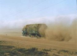 Na een uur of drie verlaten we de verharde weg. Een stoffig pad leidt ons over de vlaktes, waar gras zou moeten groeien. Het is echter de hele zomer droog geweest, zodat het er kaal en geel uitziet. Hier wonen ook nauwelijks mensen.
