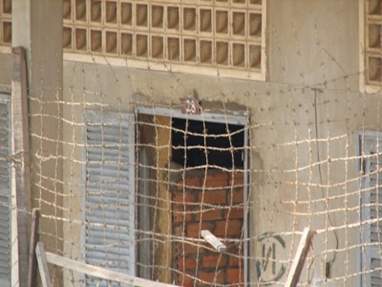 Ondanks dat het flink warm en benauwd is, besluit ik toch te voet naar het Tuol Sleng museum te gaan. Je ziet zo veel meer van al het leven op straat. Een paar keer moet ik weer met gevaar voor eigen leven een grote weg oversteken. Maar op de kruising van de Sihanouk boulevard en de Monivong boulevard hebben ze zelfs verkeerslichten, ook voor voetgangers!Even verderop is straat 113, waaraan het museum ligt. Er zijn de gebruikelijke winkeltjes en een marktje. Na een minuut of 10 lopen zie ik een samenscholing van bussen en riksja’s: het teken dat je bij een of andere attractie bent aangekomen. In dit geval wel een macabere attractie, die desondanks gemiddeld 50 bezoekers per dag trekt: de voormalige S-21 gevangenis van de Rode Khmer. Deze is omgevormd tot het genocide museum Tuol Sleng. De gevangenis was gevestigd in een oud schoolgebouw. Tussen 1975 en 1978 werden hier zo’n 12.000 gevangenen vastgehouden en gemarteld. Als verder ondervragen geen nut meer had, werd de gevangene weggebracht naar de buiten de stad gelegen Killing Fields. Daar eindigde hij of zij in een massagraf.