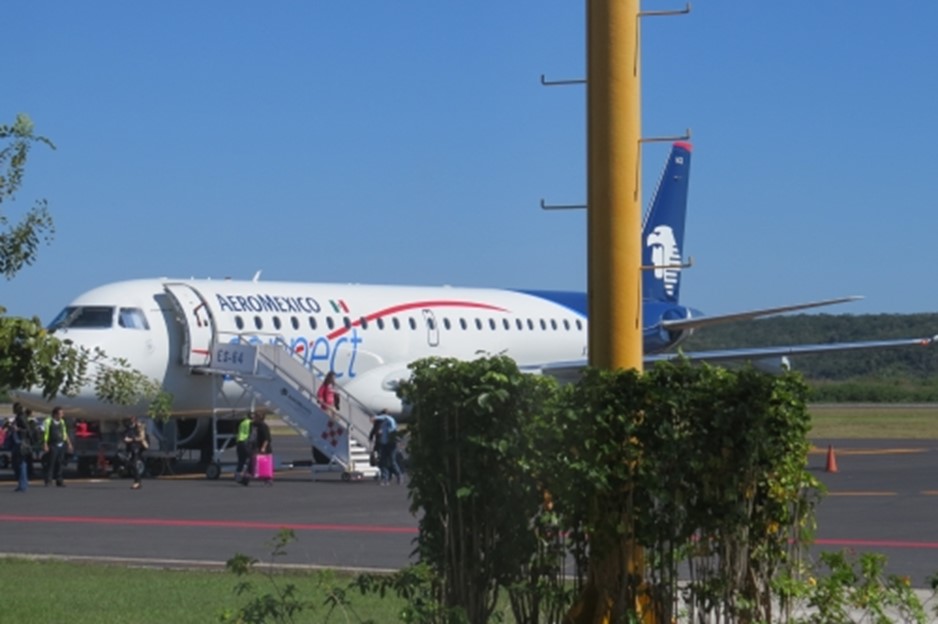 Daarnaast had ik ook nog een binnenlandse vlucht van Mexico-Stad naar Campeche in Yucatan. De vlucht was met AeroMexico in een kleiner vliegtuig (ca. 100 man), en het zat bepaald niet vol. Het vliegveld van Campeche is ook heel kleinschalig, ze rijden gewoon met het vliegtuig naar de deur van de aankomsthal. Er stonden geen andere vliegtuigen.
