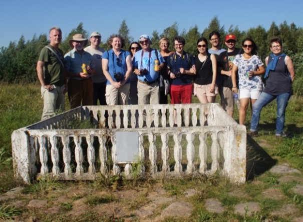 De Werelderfgoedreizigers bij een onderdeel van de Geodetische boog van Struve