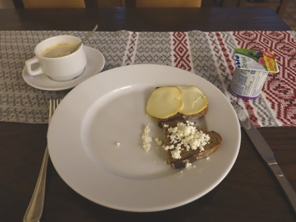 De inhoud van het ontbijtbuffet verschilde niet veel tussen de 3 hotels. Ze hebben hier heel donker brood, ergens tussen het zure Duitse brood en roggenbrood in. Vers is het erg lekker. Daarbij verschillende soorten kaas en ham, jam en honing. En ook altijd yoghurt, fruit en warme gerechten voor de liefhebbers.