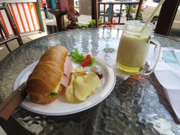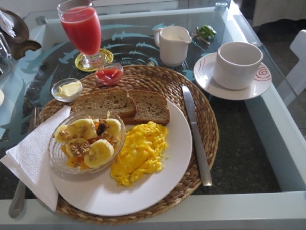 Bij het ontbijt kreeg ik bijna overal hetzelfde: toast, iets met ei, fruitsalade, koffie en vruchtensap. Ik verlangde op het laatst wel naar een ontbijtbuffet waarbij je zelf mag kiezen.