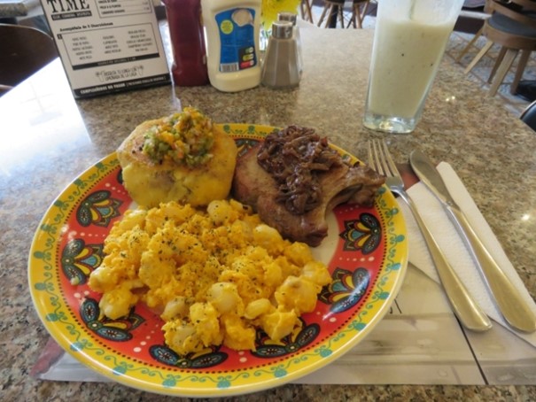 Op de andere dagen was het wat worstelen met de Ecuadoraanse of internationale keuken. Zoals met motepillo, een gerecht van gedroogde maïs vermengd met roerei.