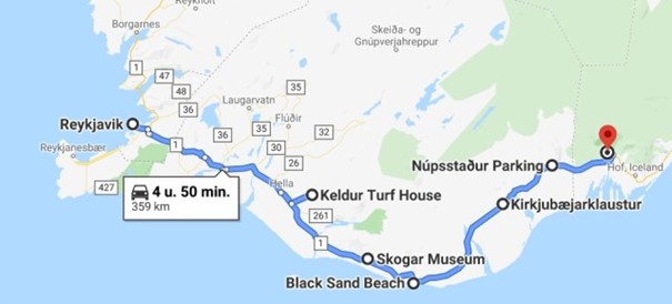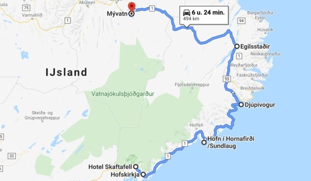 De tweede etappe van mijn rit over de IJslandse Ringweg is de langste: met bijna 500 kilometer is het zo’n 40% van het totaal. Ik rijd van de zuidkust helemaal de oostkust langs om in het noordoosten te eindigen. Het oosten is niet het deel van het land met de meeste bezienswaardigheden, vandaar dat ik er vooral doorheen rijd.