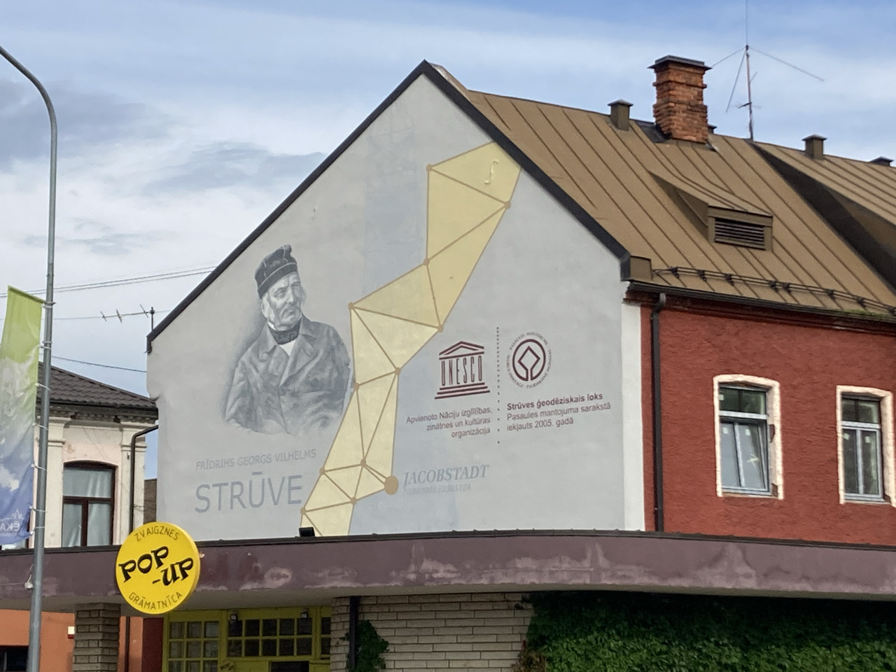 Jekabpils zelf is een aparte stad – ze hebben er een soort cult voor de astronoom Struve, die hier één van zijn meetpunten voor zijn Boog neerplantte. Deze ligt nu in een keurig parkje, dat naar hem is vernoemd. In de binnenstad is zelfs een grote muurschildering met zijn beeltenis.