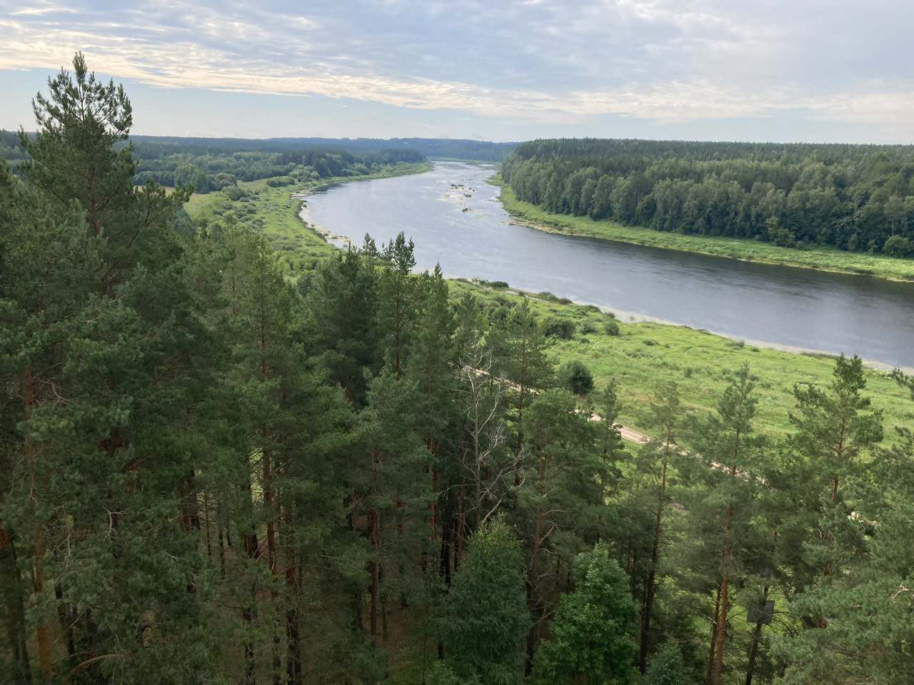 Beter zijn de hoge uitkijktorens, vooral op Vasargelišķu Skatu Tornis sta je precies in een bocht van de rivier. Ik kom maar weinig mensen tegen hier, alleen locale grootouders met twee jonge kinderen die dezelfde route aan het doen zijn.