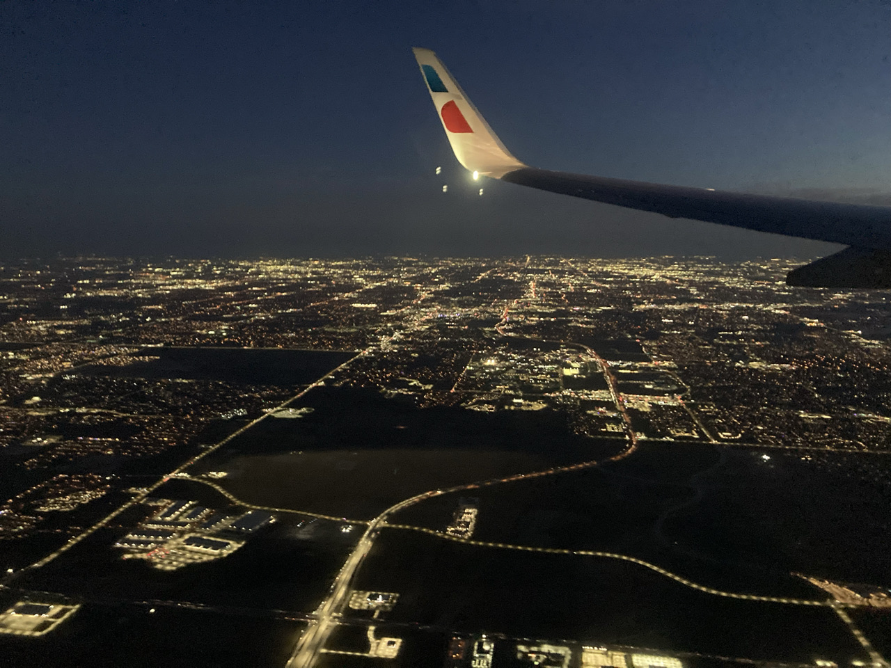 Om 17.45 vlieg ik met American Airlines naar Dallas. Op de vlucht van 2,5 uur krijgen we zelfs nog wat te drinken en een mini-snack.