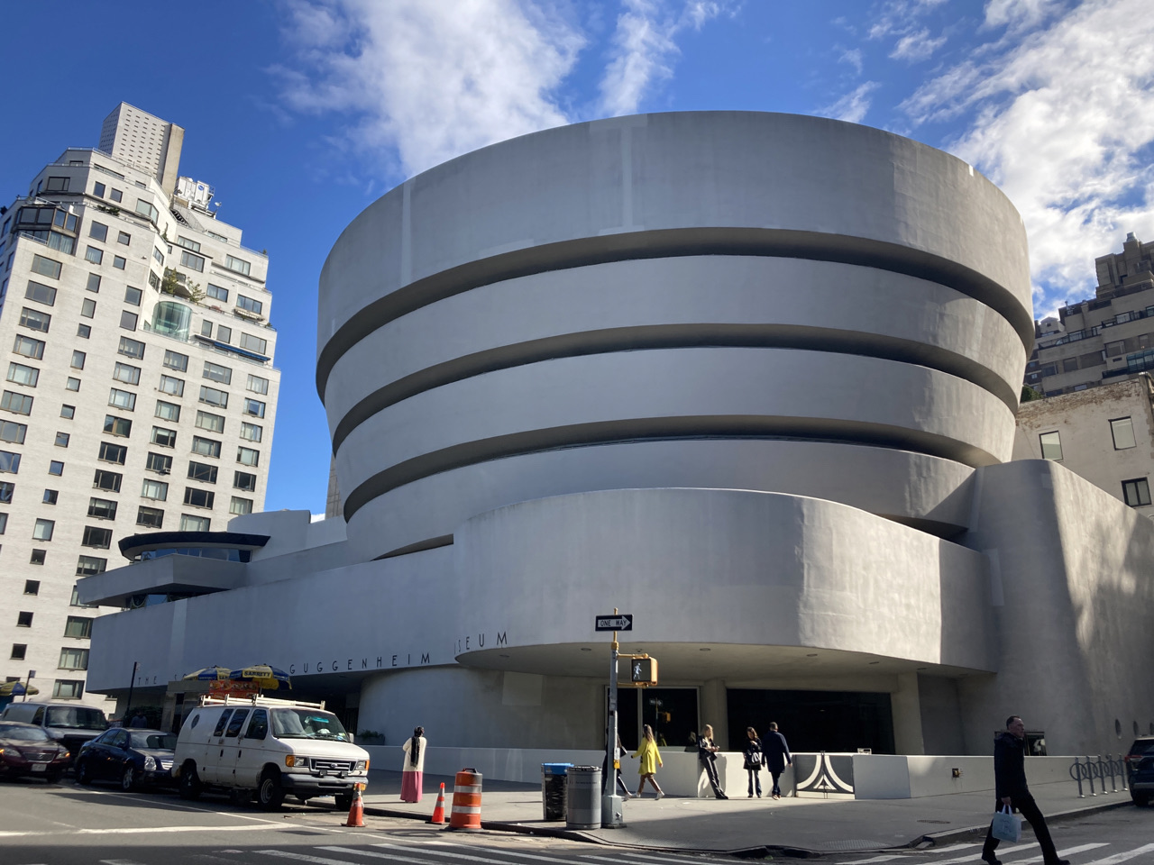 Tegen 11 uur ben ik in de buurt van het Guggenheim museum. Ik wilde er eigenlijk niet naar binnen gaan (ze zijn net tentoonstellingen aan het wisselen dus het is maar beperkt open), maar er staat geen rij dus ik neem toch maar een kijkje. De vaste collectie hier is niet zo geweldig, en ook de tijdelijke tentoonstelling van Avantgarde kunst uit Zuid-Korea doet me niet zoveel. De beroemde spiraalvormige ‘trap’ was afgesloten, dus ook de looproutes zijn wat onhandig. Van buiten is het wel een mooi gebouw, zeker omdat het relatief laag is en veel rondingen heeft wat contrasteert met de omringende hoge, smalle wolkenkrabbers.