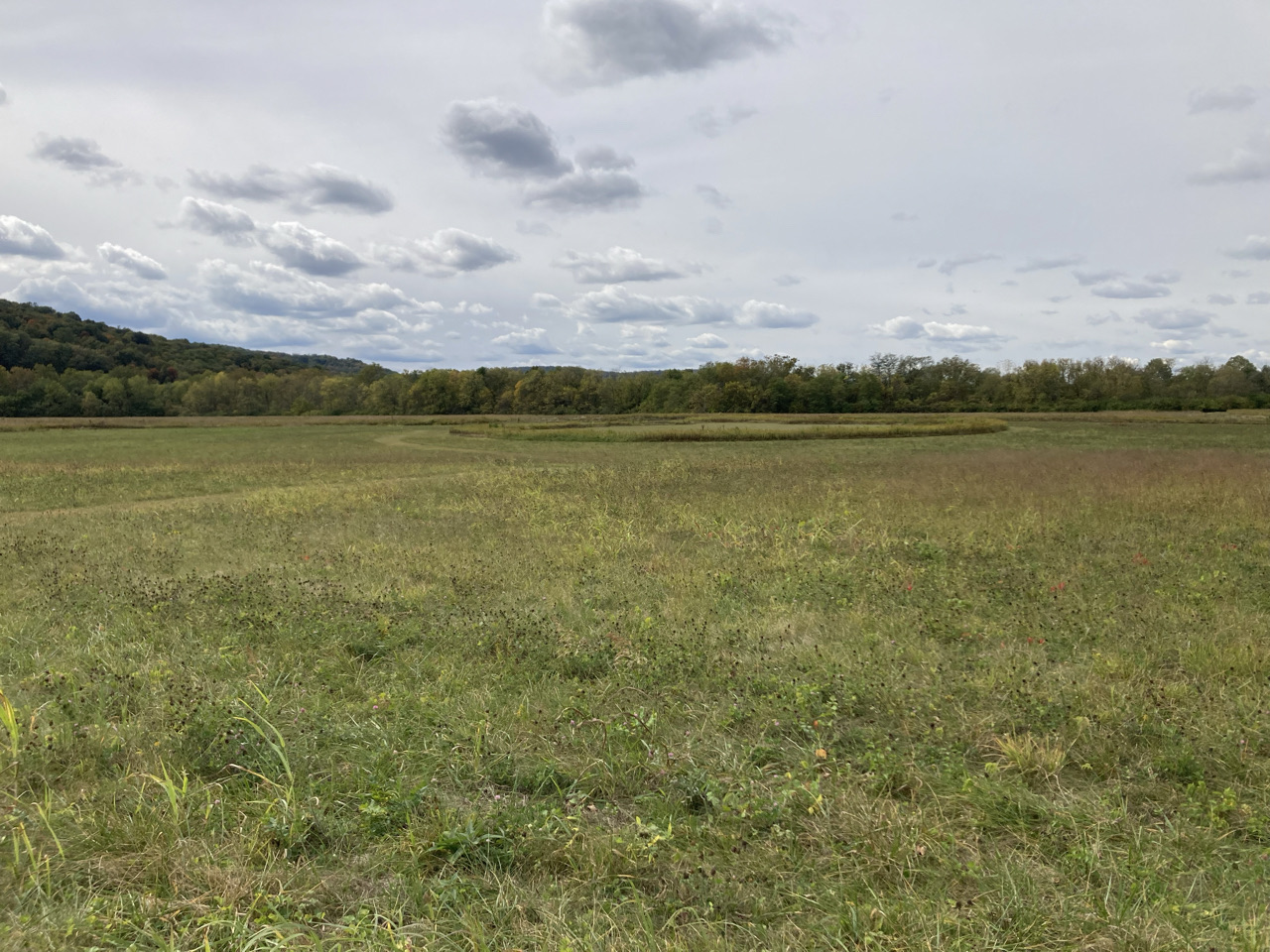 De entree tot de site is 4USD. Je kunt ervoor kiezen om het buitengedeelte met de auto of te voet te bezoeken; voor elk krijg je een boekje met uitleg over de bewegwijzering. Ik kies voor de 4 km lange wandeling. Voordat je bij het bezoekerscentrum aankomt, zie je aan beide kanten van de weg wat op landbouwgrond lijkt: dit zijn de belangrijkste grondwerken! Het kostte me een wandeling door het gras op het eerste deel van het pad om te begrijpen dat waar ik op liep eigenlijk ‘het’ was. Dit is het gebied waar de concentrische, C-vormige aarden wallen zijn gemaakt. Door het gras differentieel te maaien, vallen ze meer op en zijn ze zichtbaar als je goed kijkt. Witte markeringen geven aan waar sporen van houten paalcirkels zijn gevonden.