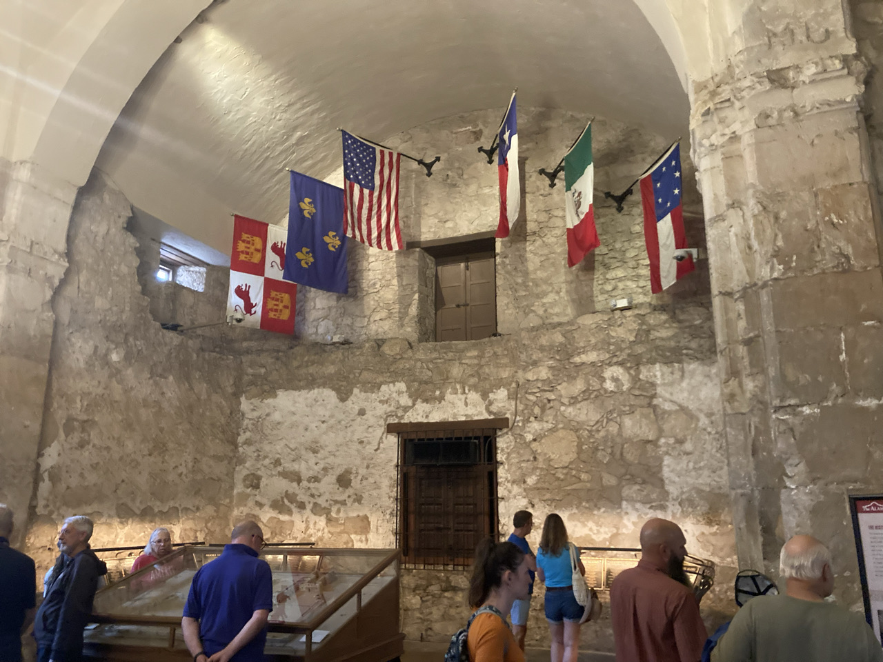 In de namiddag ga ik nog een keer naar de Alamo, en ga ook naar binnen bij de kerk. Je moet hiervoor een gratis kaartje hebben met een vaste entreetijd (die kocht ik online maar hebben ze ook ter plekke). Er is maar weinig origineel aan het interieur van de kerk, de resten van de muurschilderingen zijn zo vaag dat je wel een heel goede fantasie moet hebben om er iets in te zien.