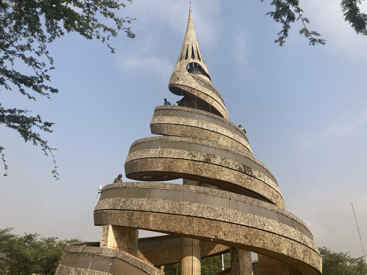 We bezoeken het Reunificatiemonument, gemaakt in de jaren 70 toen het Engelstalige en Franstalige deel van Kameroen samengingen. Het is in de vorm van een dubbele helix. Als je helemaal naar boven loopt merk je dat hij een beetje heen en weer beweegt – iedereen gaat maar weer snel naar beneden. In de kelder is een tentoonstelling over het werelderfgoed in de regio.