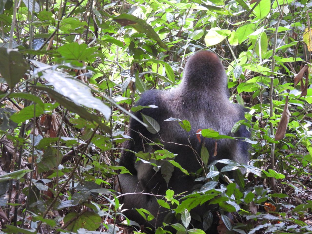 Na zo’n anderhalf uur rijden door de dichte bossen arriveren we om 9 uur bij Bai Hokou. Hiervandaan vertrekken de gorilla trekkings. Nadat vorig jaar twee silverbacks zijn omgekomen (door natuurlijke omstandigheden), hebben ze hier nog maar één groep die bezocht kan worden. Het is het gezin van Makumba, die 40 jaar oud is. Hij heeft twee vrouwen en vier kinderen (inclusief een tweeling).
