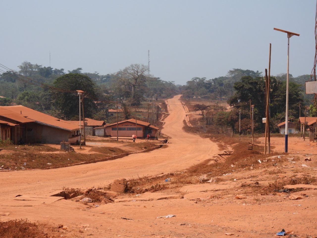 De eerste 80km vandaag gaan nog over dezelfde goede asfaltweg als gisteren. We rijden via Batouri, dat bekend staat om ziijn goudmijnen die nu door Chinezen worden geëxploiteerd. Dit is qua natuurschatten de rijkste regio van Kameroen, maar de lokale bevolking krijgt er weinig voor terug.