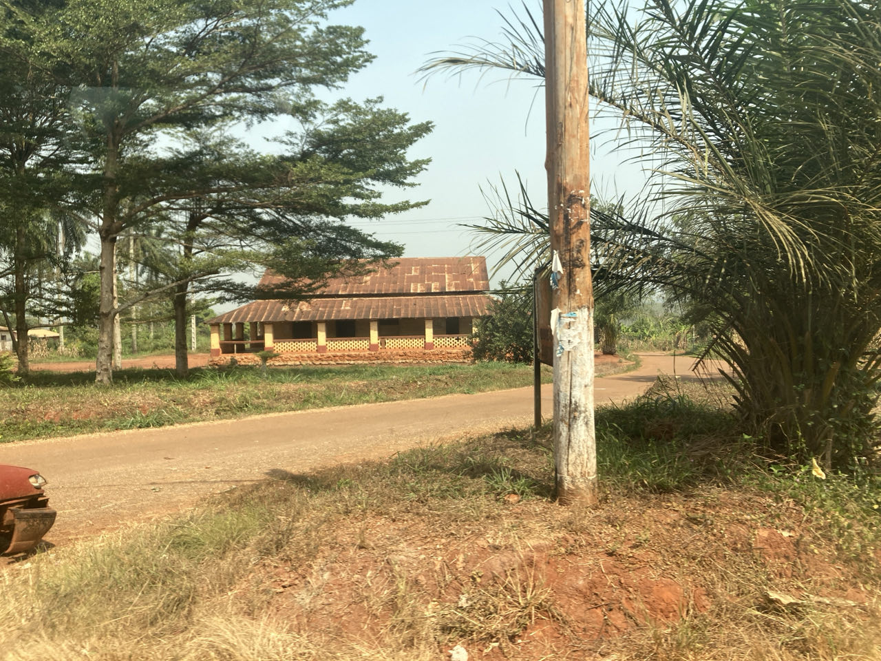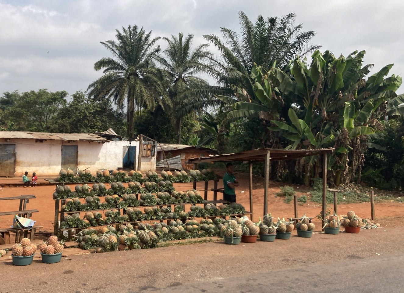 De rit van vandaag is 350km lang. Hij voert langs bossen en landbouwgronden – vooral de ananas doet het goed hier. De lokale gids vertelt het een en ander over het land – zo is het ondanks de Franse taal en het stokbrood nooit een klassieke Franse kolonie geweest (alleen een mandaatgebied na de Eerste Wereldoorlog). Het was wel een Duitse kolonie voor een korte periode vanaf 1884. Hier en daar zien we nog wat resten van gebouwen uit die tijd langs de weg, maar het Duitse zie je er niet aan af.