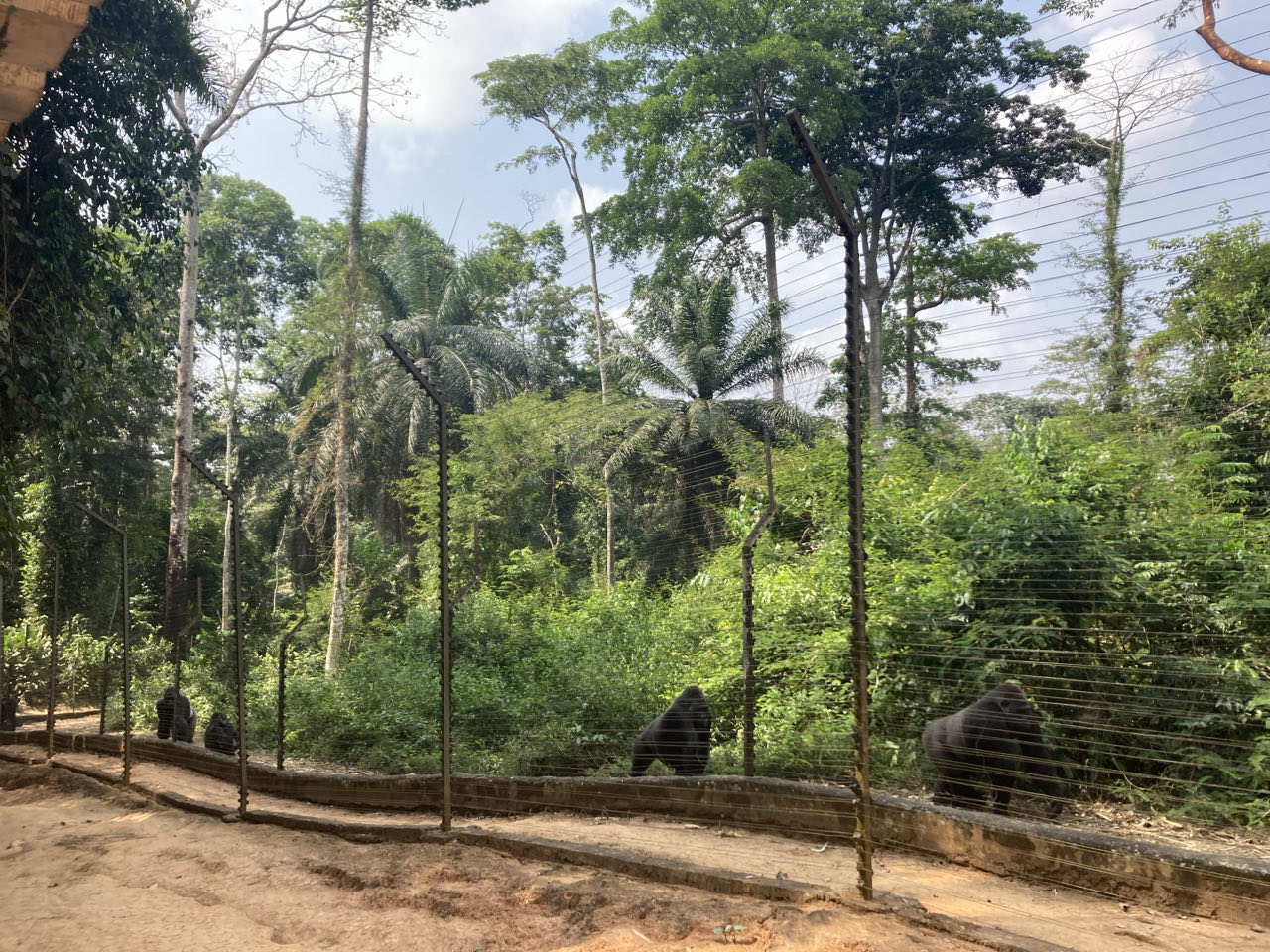 Met twee auto’s rijden we eerst anderhalf uur de stad uit naar het Mefou reservaat. Dit is een private stichting waar verweesde primaten worden opgevangen: gorilla’s, chimpanzees en verschillende soorten apen. Onze komst blijkt niet gereserveerd te zijn, wat voor wat verwarring en wachten zorgt. Maar na een half uur komt er toch een gids om ons rond te leiden.