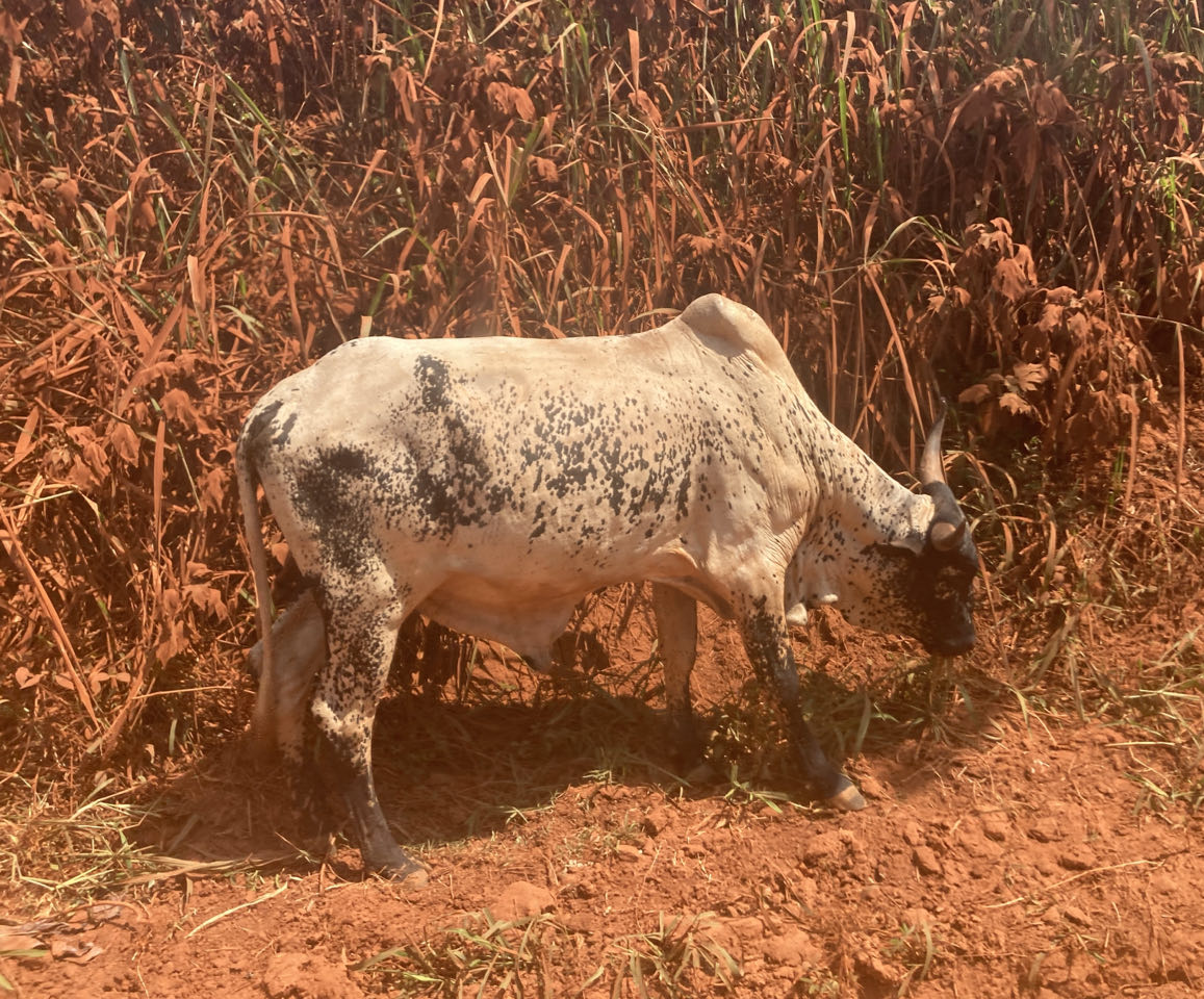 We komen niet zoveel tegen onderweg anders dan wat simpele huizen. De mensen lijken hier allemaal pal aan de weg te wonen. Het meest spectaculair zijn de Fulani, nomadische herders met hun grote kuddes van zo’n 100 koeien (zeboes) die gebruik maken van de weg.