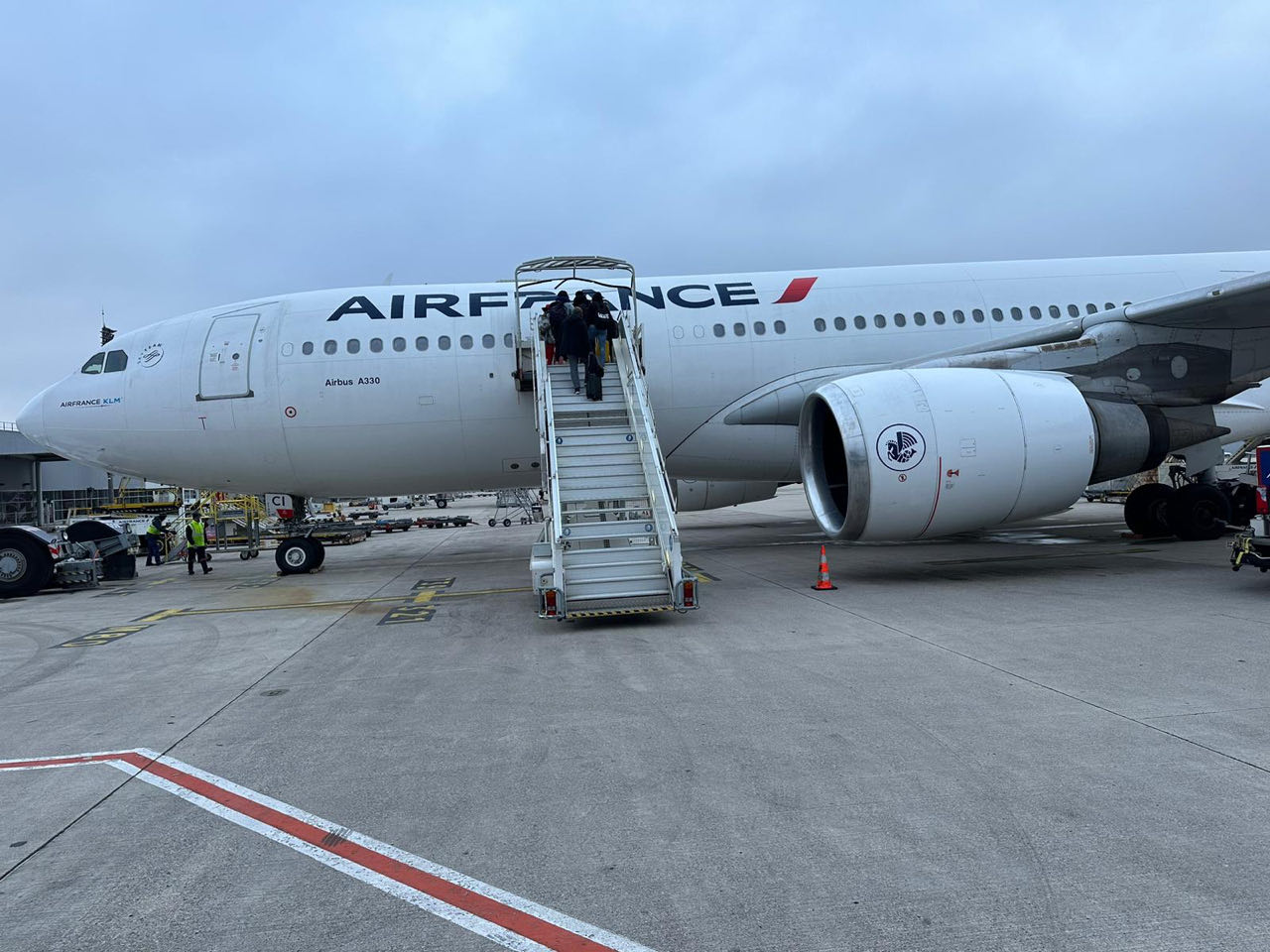 In het vliegtuig van Air France weet ik twee stoelen voor mezelf te bemachtigen. De vlucht van 7 uur gaat redelijk snel voorbij – ik kijk 9 afleveringen van een Franse misdaadserie, ik mis alleen hoe het afloopt in deel 10!