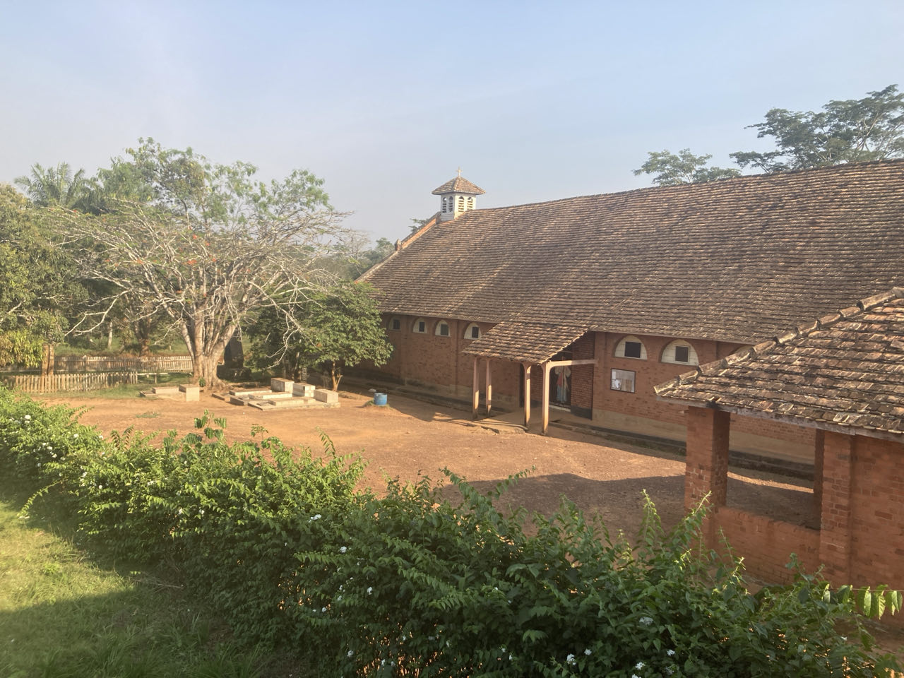 Om half vier komen we aan bij de katholieke missie in Yakodouma, een ruim complex met een grote ‘Duitse’ kerk. De kamers zijn simpele cellen met een bed met muskietennet, tafel en stoel, maar een nacht moet wel lukken hier. We eten hier ook. Ze hebben hun best gedaan met kip, vis en groenten, inclusief (Duitse) zuurkool!