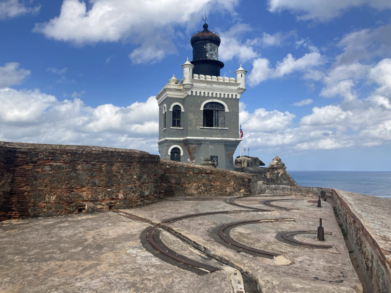 Het werelderfgoed in San Juan bestaat uit een aantal vestingswerken, die allemaal te voet zijn te bezoeken. Het is al wel heet en het is ook bergop. Het is vandaag een Puertoricaanse feestdag en de omgeving van het paleis Fortaleza is afgezet (de gouverneur van Puerto Rico woont er). Ik loop dus maar meteen door naar het fort El Morro, dat op de punt van het schiereiland ligt.
