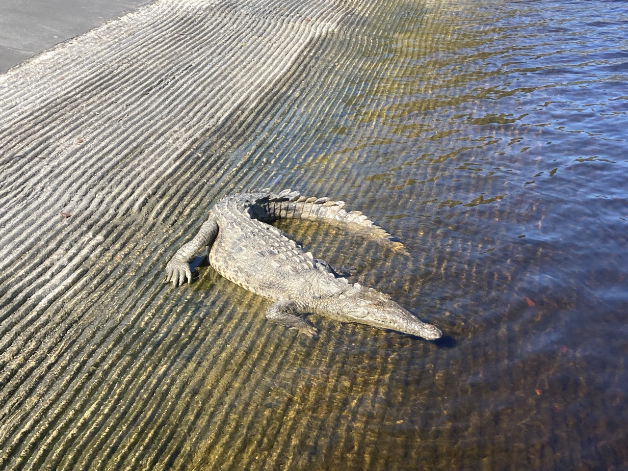 De jachthaven is ook een verrassend goede plek voor wilde dieren, omdat deze zowel een zoute als een brakke kant heeft: zeekoeien steken hun hoofd boven het water om vlak bij de pieren te ademen, en aan de andere kant liggen krokodillen te zonnebaden. Ze hebben ook een visarendnest waar de vogels elk jaar naar terugkeren. Ik ben vooral blij om de zeekoeien te ontdekken, omdat het een zoogdiersoort is die mij wereldwijd altijd was ontgaan. Ze houden van het warme water en het zeegras van Florida Bay.