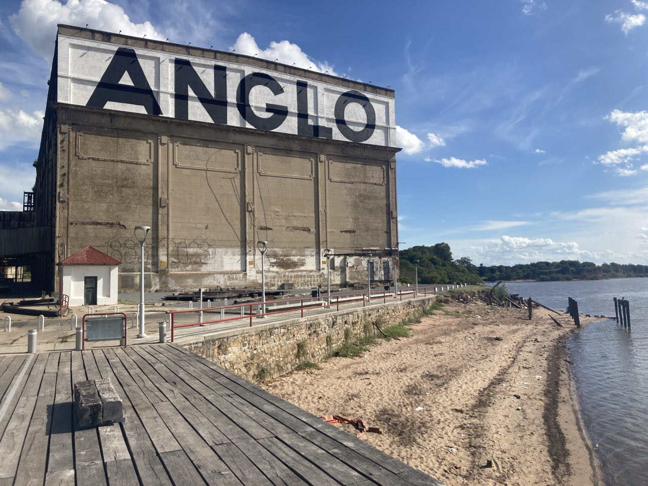 Ik ben hier voor het industriële erfgoed van Fray Bentos. Dat ligt in een buitenwijk genaamd Barrio Anglo. Ik loop er in 40 minuten naar toe, meest over een speciaal aangelegd pad. Je komt eerst door de fabriekswijk, hier woonden de duizenden arbeiders die in de vleesfabriek werkten. Deze werd hier met Britse investeringen opgericht omdat er veel vee en een bevaarbare rivier voorhanden waren. De vleesproducten gingen verpakt in blik en bevroren naar Engeland en de VS. Vooral om en tijdens de Wereldoorlogen was het populair voedsel voor de soldaten en de armere bevolking.