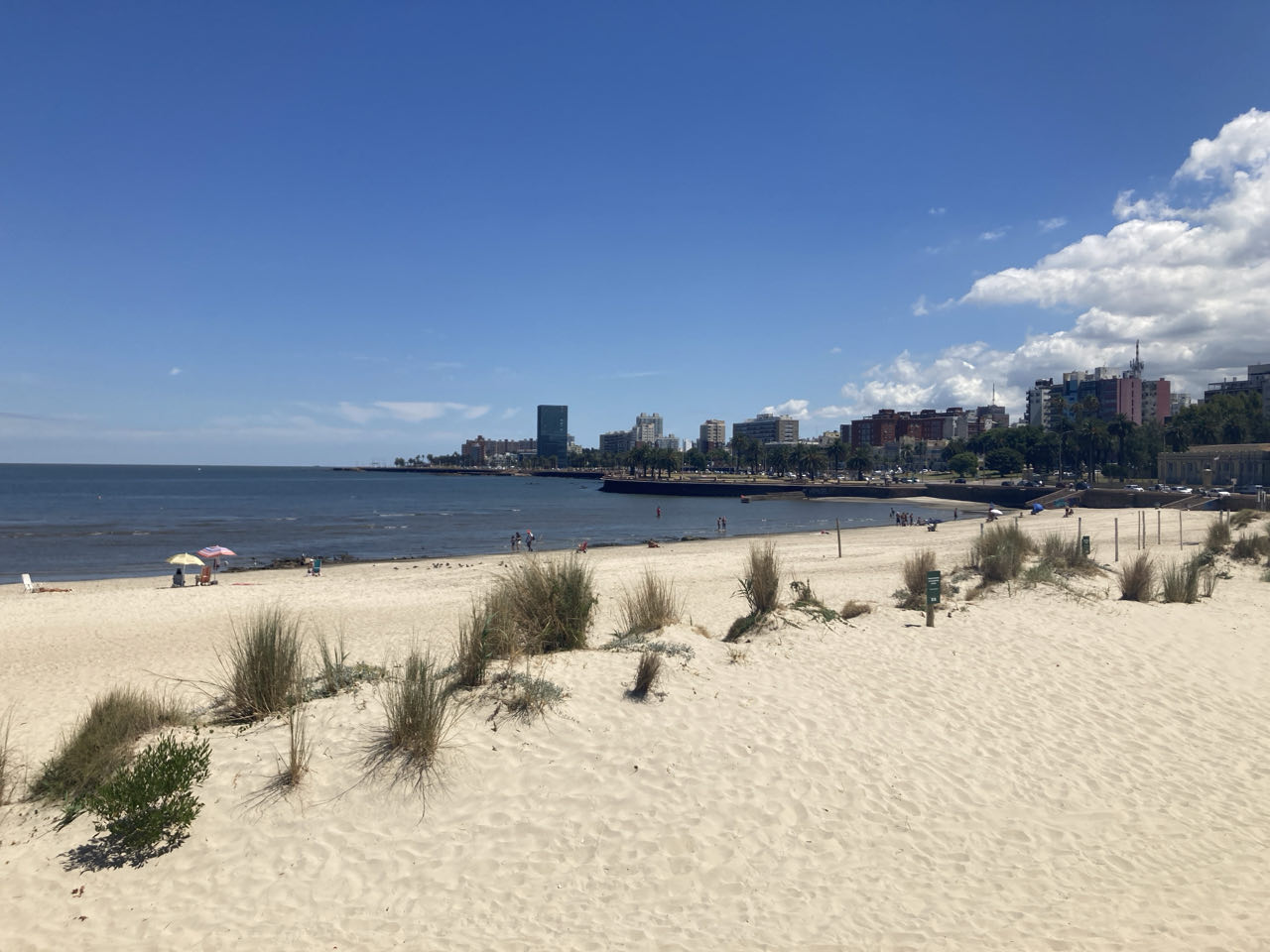 Daarna kun je een rechtstreekse bus terug nemen naar de oude stad (Ciudad Vieja), maar ik loop nog eens 4 km over de Rambla (een ander mogelijk toekomstig werelderfgoed van Montevideo). Het is heet, en ik pauzeer zo nu en dan door op de bankjes te gaan zitten die de barrière vormen met de rivier. Er zitten veel watervogels en er waait een frisse wind.