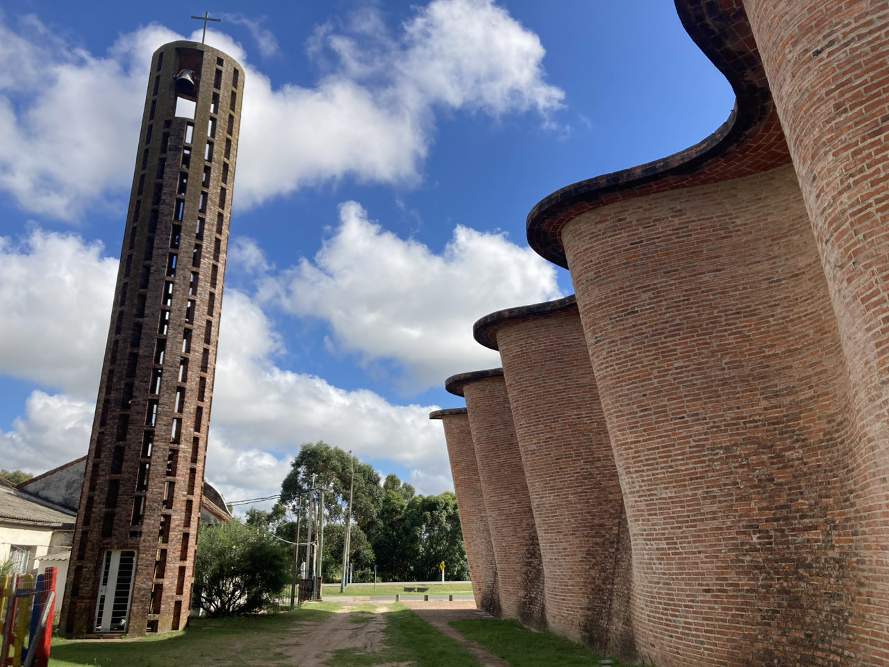 De deur van de kerk staat open, ze zijn aan het schoonmaken. Even later arriveert er nog een andere toerist. De buitenkant is echter indrukwekkender dan het binnenste: het gebouw van de Uruguayaanse architect Dieste staat bekend om zijn gebogen bakstenen muren. Het is zo vreemd een onorthodox kerkgebouw als dit zomaar ergens op het platteland te zien.