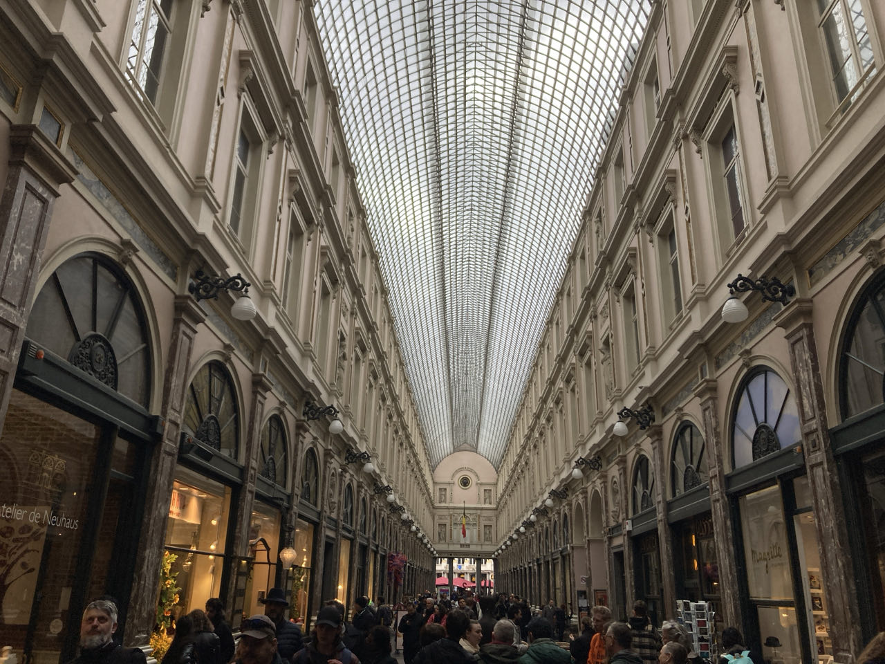 Via de Grote Markt, die in de zon ligt die de gouden details goed laat uitkomen, loop ik dan naar de St. Hubertusgalerijen. Dit is wellicht de eerste met publiek geld gefundeerde winkelstraat (1847). Dergelijke galerijen zie je ook in Parijs, Milaan en zelfs Den Haag. Het was bestemd voor de rijken, maar het is nu niet meer zo bijzonder en ik kan me niet voorstellen dat België dit ooit gaat nomineren.