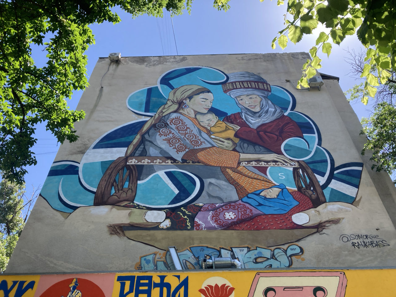 Het is prettig wandelen in de straten in deze buurt, met veel groen en fijne terrassen. De bouwstijl is niet echt een eenheid. Wel vind je er een paar staaltjes brutalisme uit de Sovjet-tijd, zoals Hotel Kazakhstan en het Abai-operahuis (dat ook classicistische trekjes heeft).
