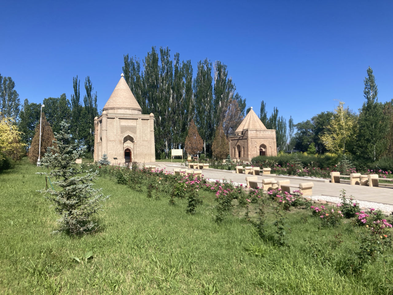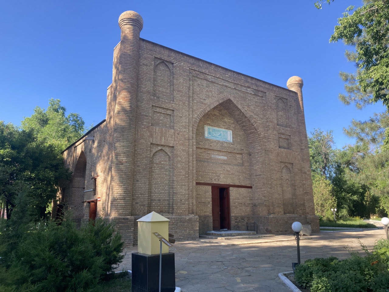 Je kunt het meteen zien liggen als je de stad in rijdt, zo enorm is het. Het ligt in een keurig aangelegd park met veel rozenstruiken. Je mag vrij op het terrein rondlopen, maar om binnen te geraken moet je (als buitenlander) 500 tenge betalen. Binnen zijn ze aan het renoveren, maar een historische ketel en dé graftombe kun je nog wel zien.