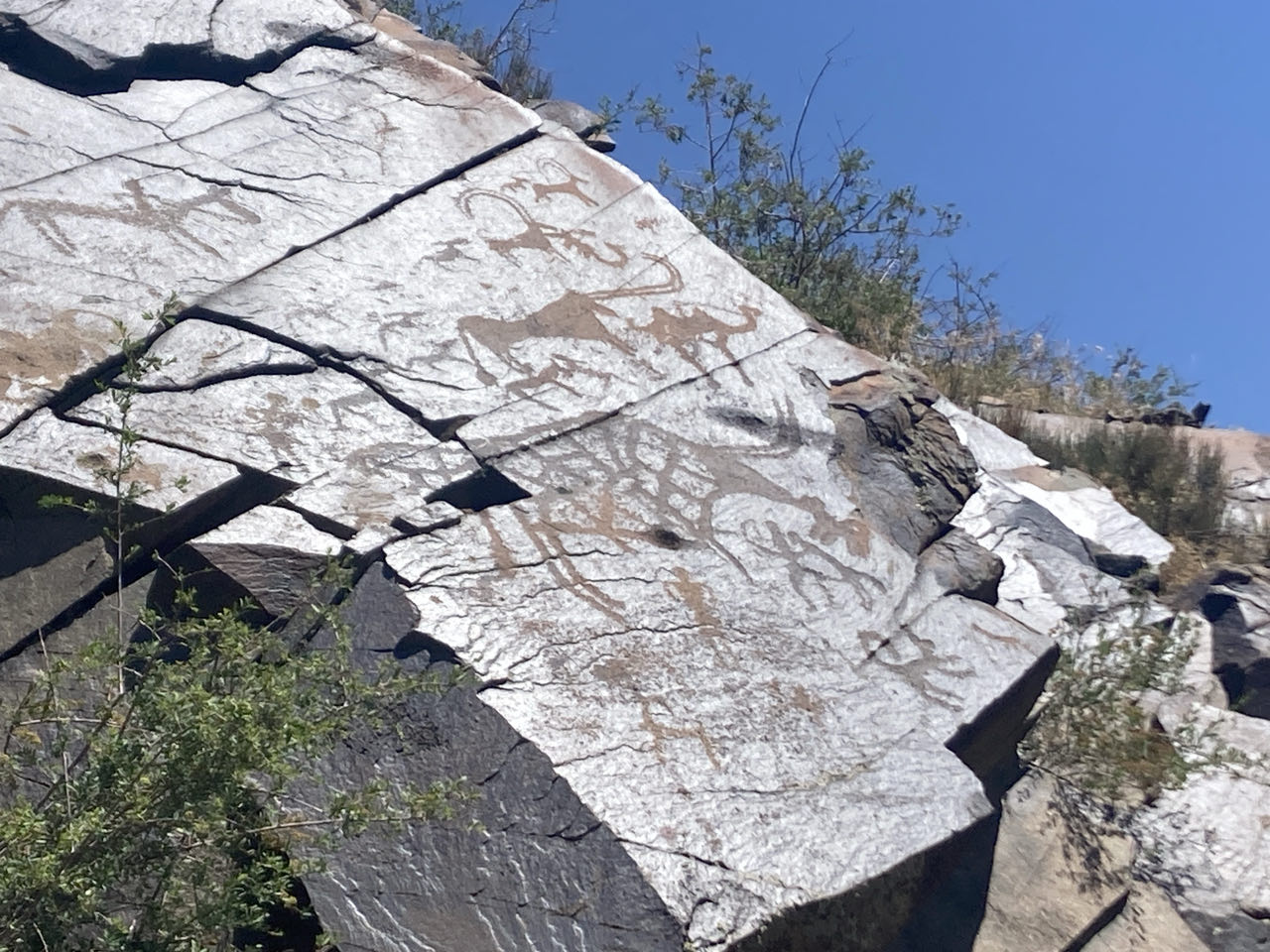 Een bezoek aan de site zelf doe je te voet via goed gemarkeerde paden. Niet alle rotspanelen zijn open (ze hebben er 7) – we hebben 3, 4 en 5 gedaan en paneel 2 vanuit een uitkijkpunt bekeken. Mijn chauffeur/gids is er al wel eerder geweest, maar is geen specialist op dit gebied. Wel weet ze waar ze moet zoeken naar de meer bijzondere gravures zoals de drachtige koe, de vechthond, dansende mensen en enkele zonnegoden. Ik heb mijn superzoomcamera meegenomen, wat goed van pas komt omdat de rotskunst van een afstand vaak beter te zien is dan wanneer je er recht voor staat.