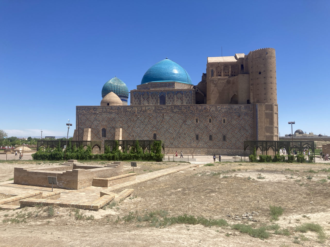 Khoja Ahmed Yassawi was een belangrijke Soefi-geleerde, en gelovigen komen nog steeds hun respect betuigen. Voor de toerist is misschien wel meer van belang wat de Turks-Mongoolse krijgsheer Timoer Lenk ervan gemaakt heeft: het is één van de eerste en grootste monumenten in de Timoeridische stijl. Het is de voorloper van de azuurblauwe tegeltjes-werken in het Oezbeekse Samarkand en Bukhara.