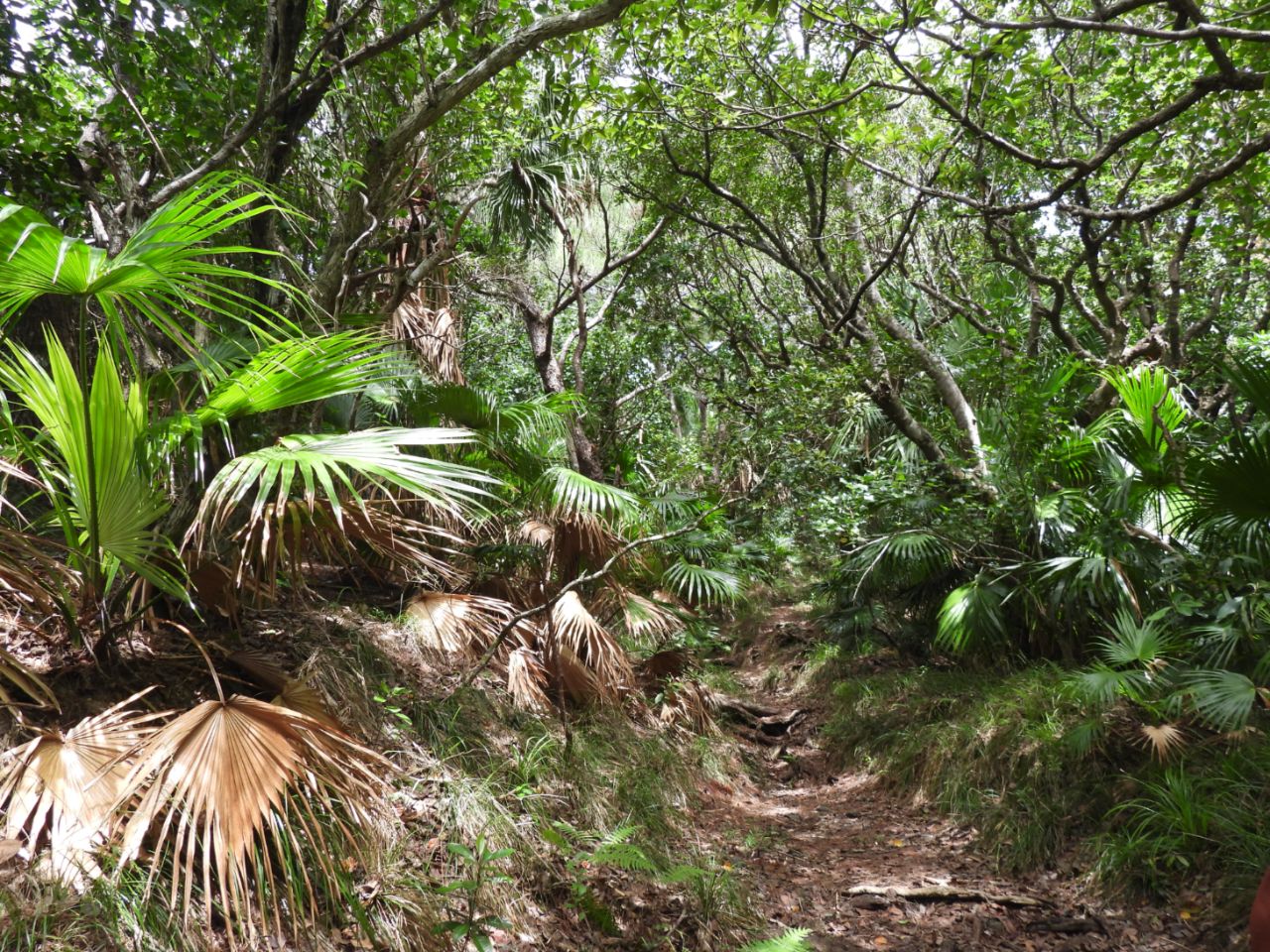 Het grootste deel van het nationale park op Chichi-jima bestaat uit beboste bergen. Er is een bergweg, maar die is niet toegankelijk met de bus en wandelend of fietsend lijkt het een hele uitdaging. Bovendien heb je voor verschillende delen van het bos een officiële gids nodig om binnen te komen. Dus ik kies ervoor om een Forest Hiking Tour te doen met een bedrijf genaamd TAKE Nature Academy.
