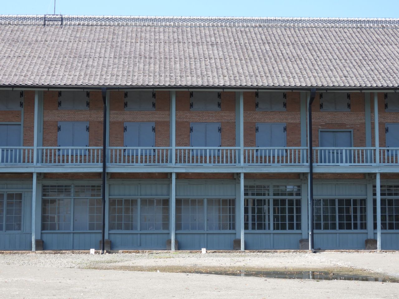 Het is een groot terrein waar nog drie grote fabriekshallen overeind staan, en diverse woonhuizen en slaapzalen voor het personeel. Alles is in een mix van Japanse en Westerse elementen gemaakt, met gebruik van veel baksteen en hout. Op het middenterrein zijn ze nog druk aan het werk (restauratie? herbouw?), zodat het allemaal nogal rommelig overkomt. Ook moet je zelf je weg een beetje zoeken tussen alle gebouwen.