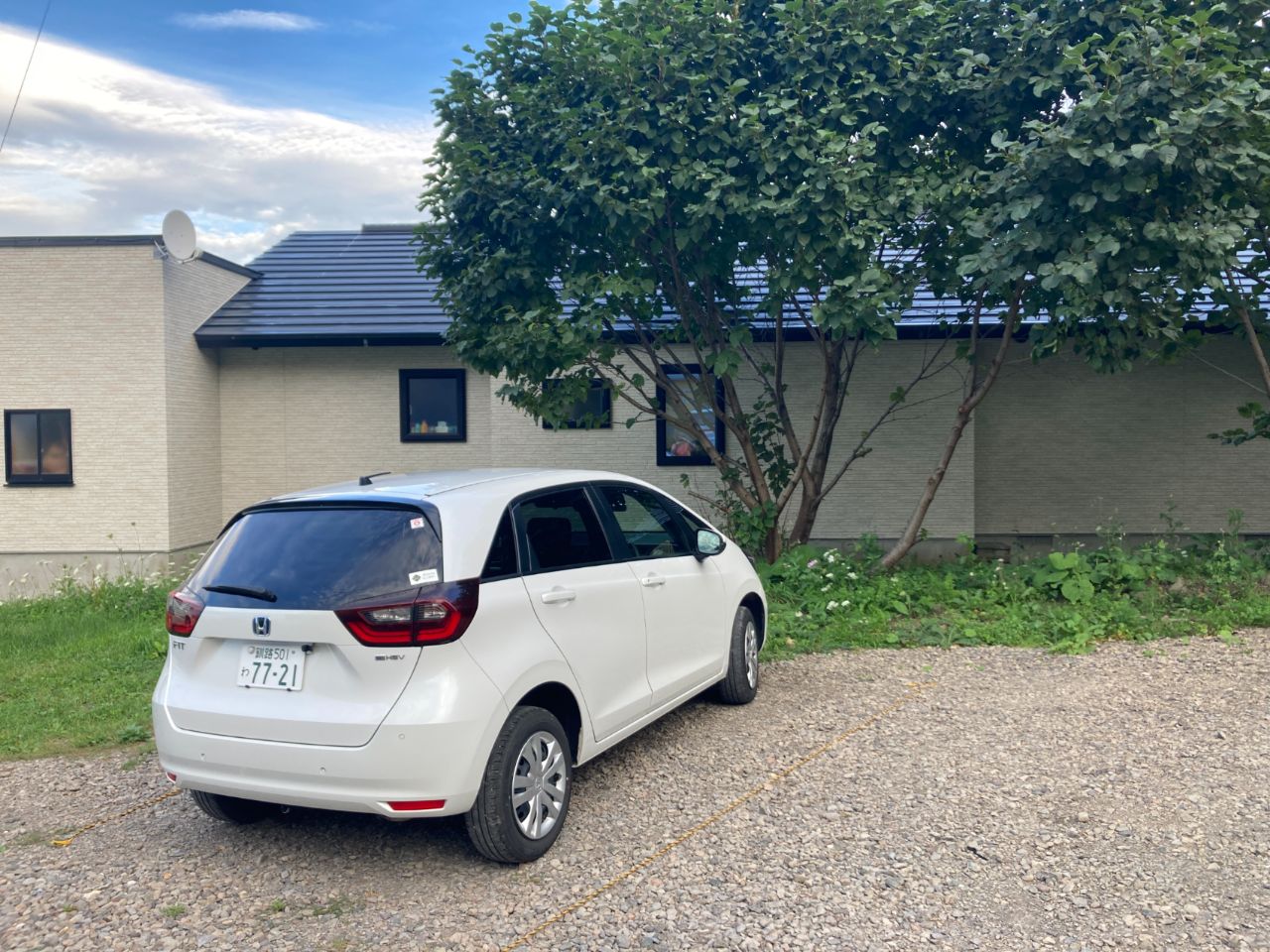 Op het kleine vliegveld van Memanbetsu meld ik me bij de balie van Orix om mijn huurauto op te halen. Ik word eerst met een busje naar ‘het kantoor’ buiten het vliegveld gebracht. Daar verwachten ze me al. De afhandeling gaat snel (geen borg!), en met goede uitleg met wat extra aandacht voor afwijkende Japanse verkeersborden. Ook stelt de medewerker de autonavigatie in op Engels. De auto is een kleine witte Nissan Note E-Power.