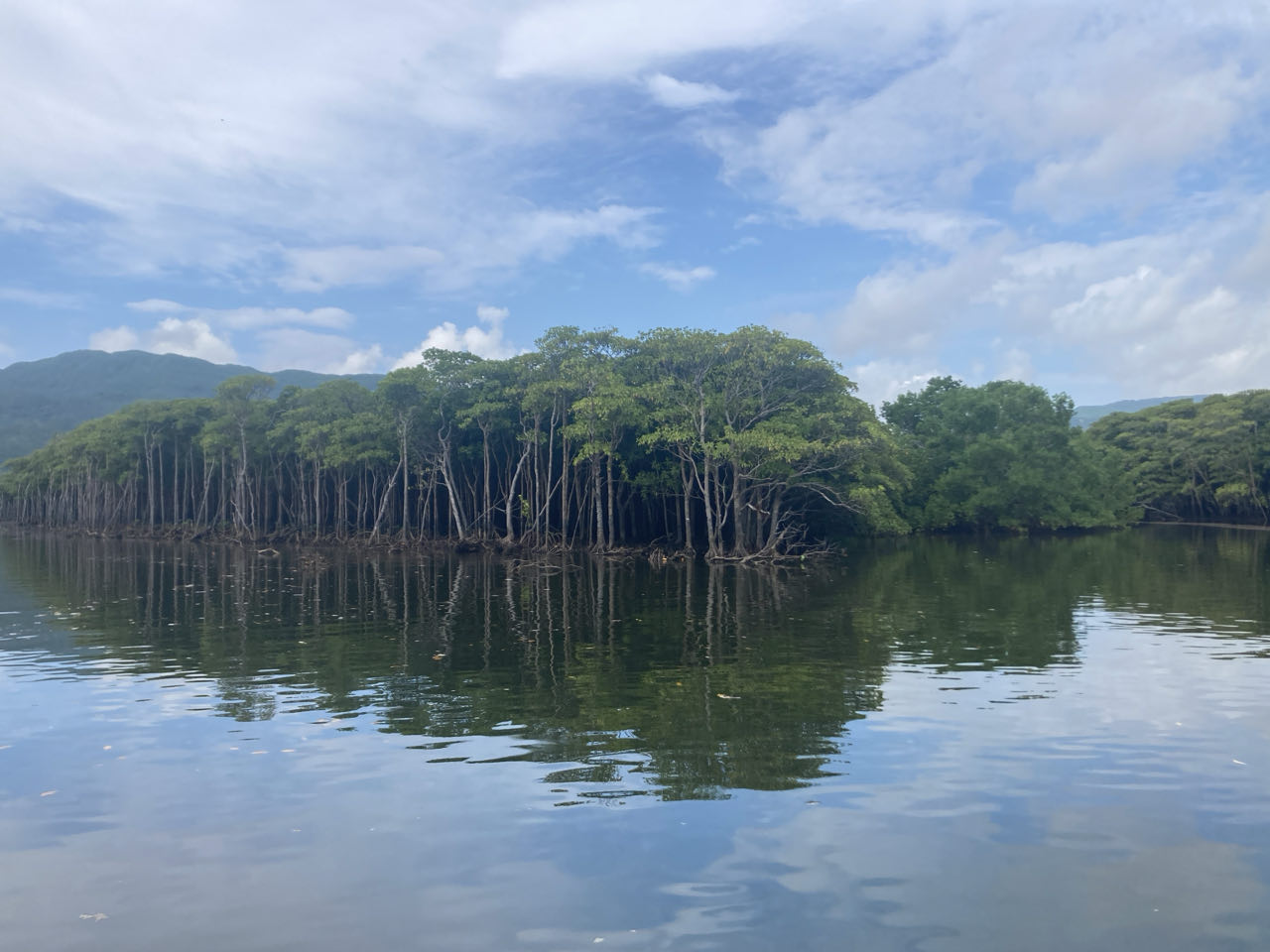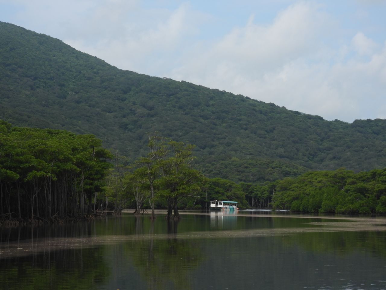Het commentaar is alleen in het Japans, maar naast 1.000 keer het woord ‘mangrove’ hoorde ik de schipper ‘Amazon’ zeggen. En die vergelijking is niet zo gek als het klinkt. Van tevoren was ik een beetje blasé over het zien van mangroven (voor de zoveelste keer ergens ter wereld), maar deze zijn echt spectaculair. Het bos is dicht en de mangrovebomen lijken hoger dan ik ze ooit eerder heb gezien. Ze herbergen vogels zoals de witte zilverreiger en opmerkelijke aantallen grote en kleurrijke vlinders. Het hele landschap met de kalme rivier en de beboste bergen op de achtergrond is gewoonweg pittoresk.