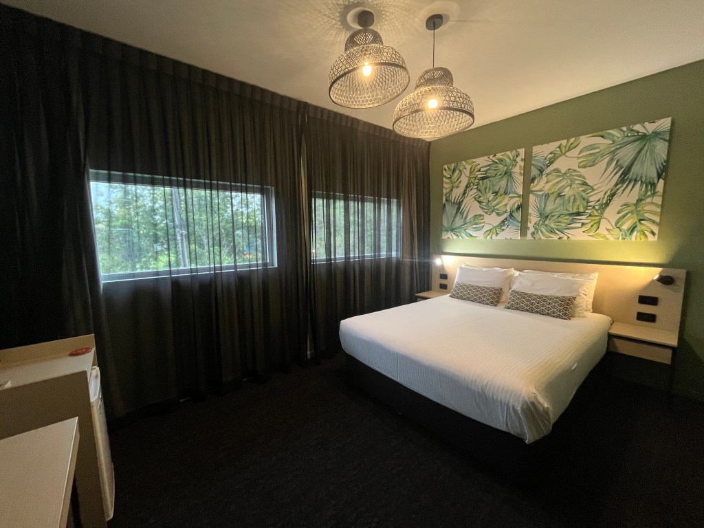 Neranga, Nightcap: soort doorreishotel langs de snelweg. Wel een nette, ruime kamer. 84 EUR