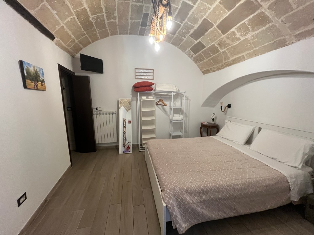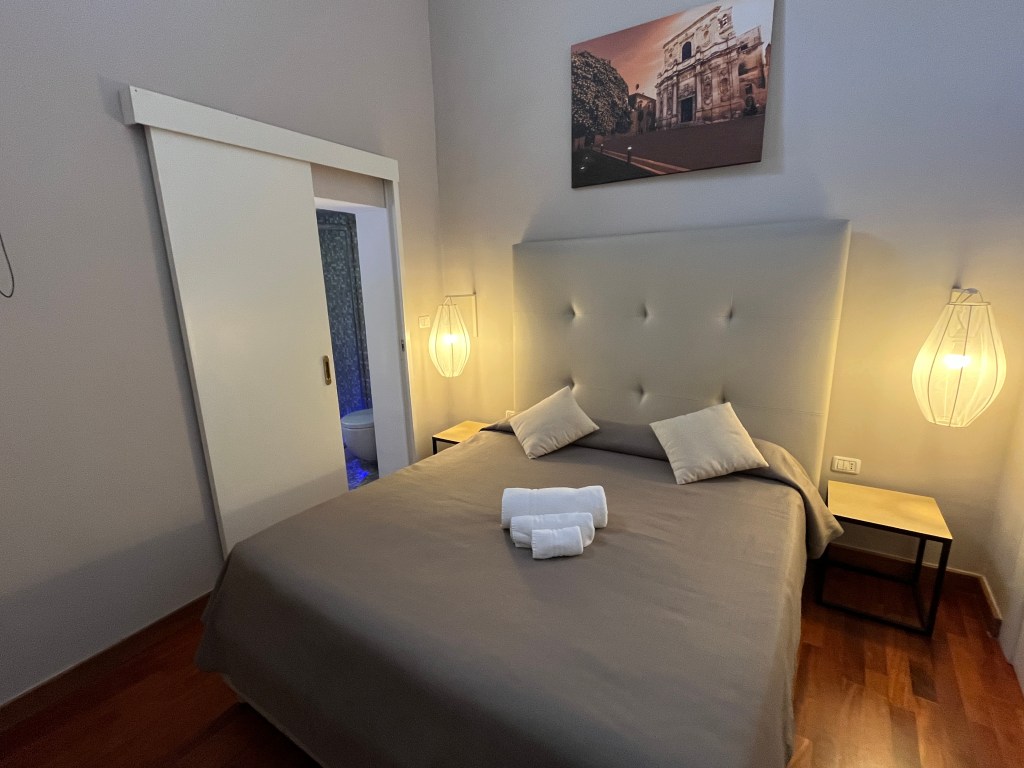 B&B Centro Storico, Lecce: saai gebouw in de oude binnenstad, kleine kamer met krappe douche. Fijn bed. 62 EUR zonder ontbijt.