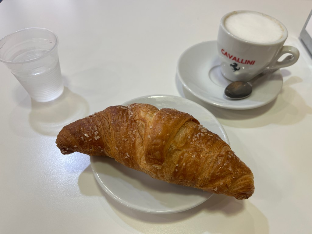 Hoewel ik in een flink aantal Bed & Breakfasts overnachtte, moest ik vaak zelf mijn ontbijt regelen. De standaard is dan een cappuccino en een cornetto.
