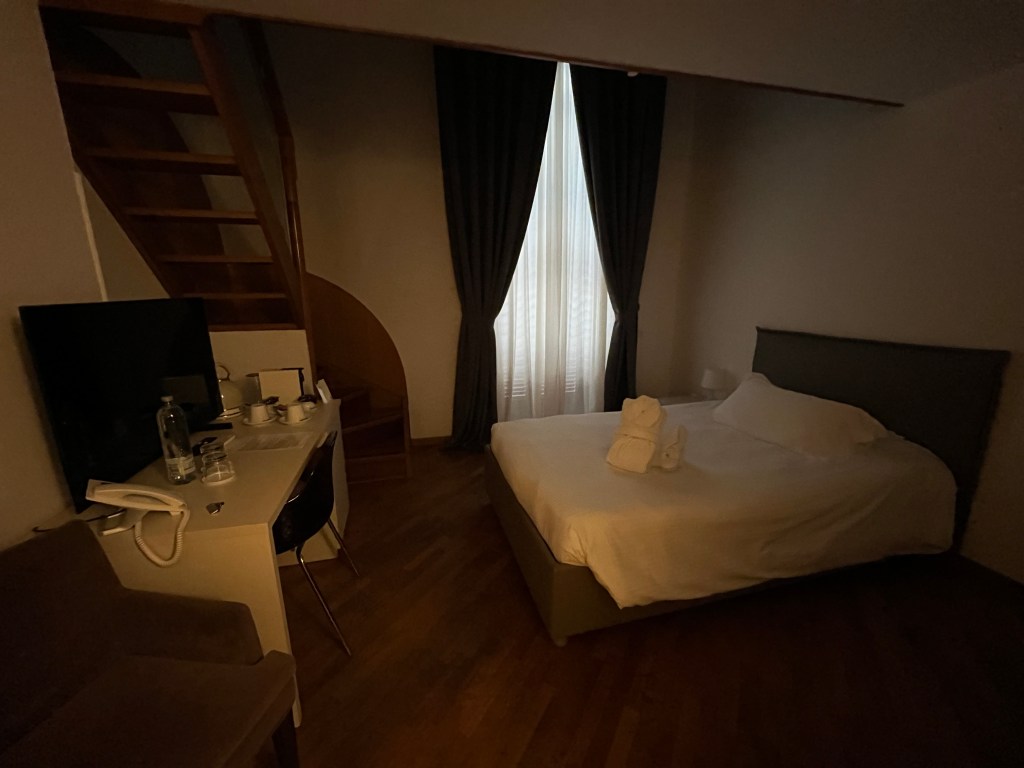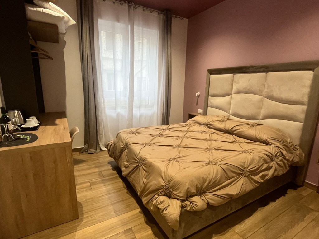 Alleria Rooms, Napels: Kamer in appartementencomplex vlakbij het station. Netjes en vriendelijk. Bed lag niet zo lekker. 109 EUR met ontbijt.