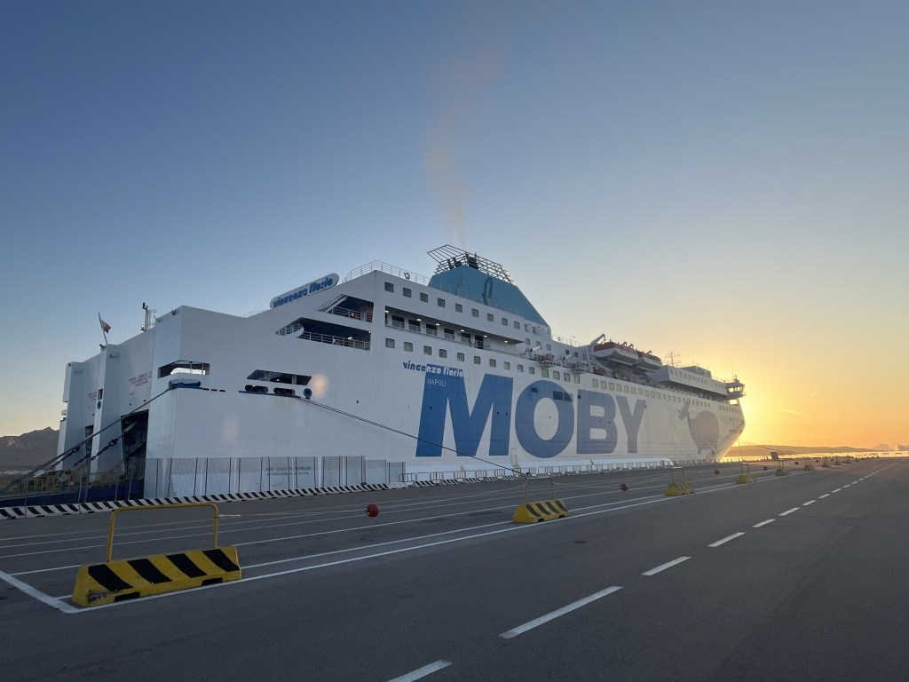 Van Civitavecchia naar Olbia met Tirrenia: een klassieke mediterrane veerboot. Ik had een nette hut waar ik de hele overtocht (22.30-6.30 uur) heerlijk heb geslapen. 98 euro voor de transfer en een hut voor 1 persoon.